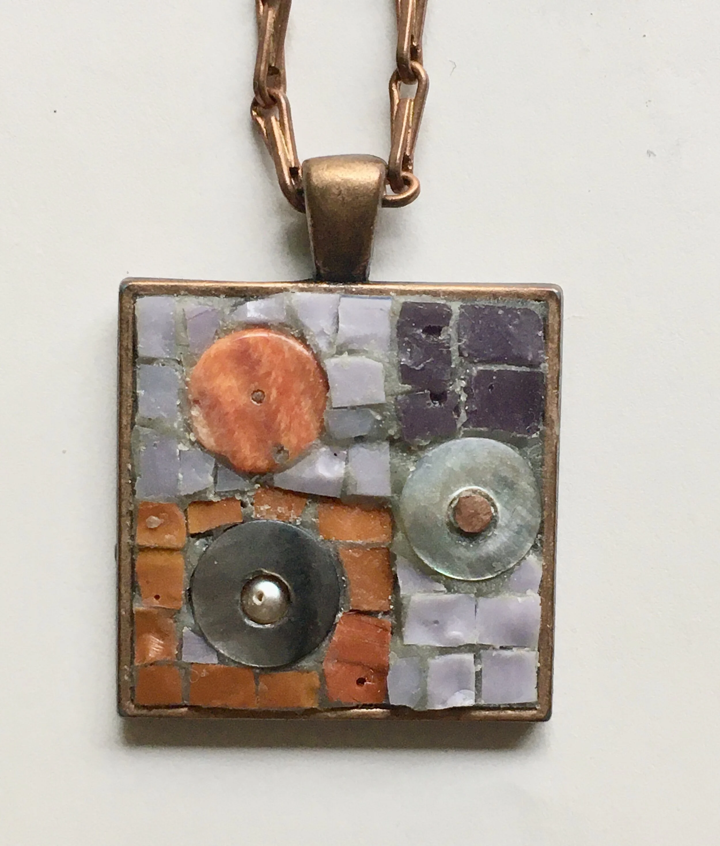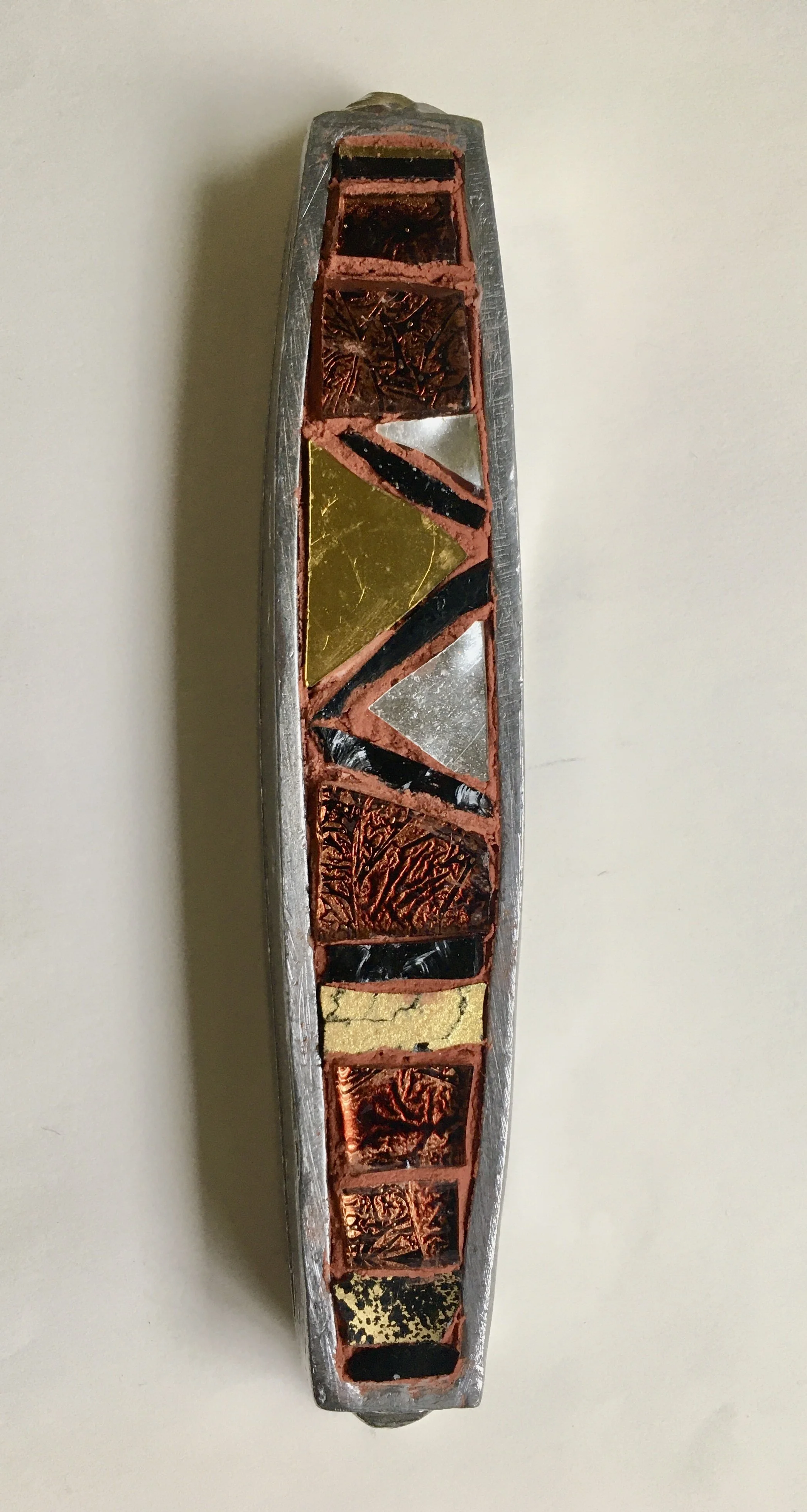 Ellen has an extensive background in the arts, specializing in ceramics, sculpture, and mosaic. She has been exploring the Italian method of mosaic using smalti glass and other materials in various jewelry forms. In addition, she has created several lines of mezzuzot using these and other materials. Currently she is returning to ceramics (her first love)! Her training includes an MFA from Claremont Graduate University, workshops with mosaic masters, and a natural curiosity!